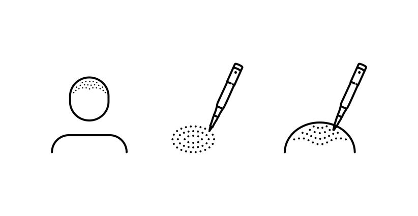 SMP紋髮技術的原理,是透過在頭皮上植入微細紋髮色素點,視覺效果上模擬真實的毛囊,就好比用非常小的點點來「畫」出頭髮的濃密感,達到skinhead的效果。